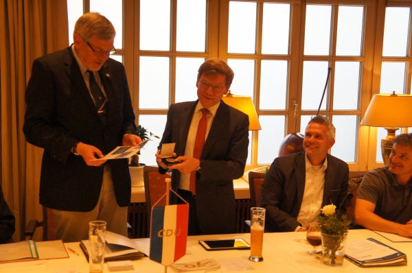 Neben der Wahl des neuen Gesamtvorstandes der CDU Nortorf stand insbesondere die Ehrung von Horst Krebs im Mittelpunkt der gestrigen Jahreshauptversammlung. Horst Krebs erhielt vom Kreisvorsitzenden der CDU Dr. Johann Wadephul eine Ehrenurkunde und Dankesmedaille für 31 Jahre CDU-Ortsvorsitz in Nortorf.